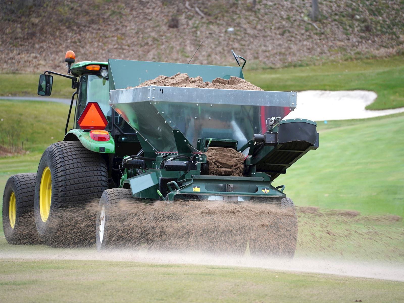 Den patenterte CR-20 fra Turfco – med den største kapasiteten i serien – kombinerer enestående produktivitet med presis fairway-topdressing og materialhåndtering, slik at den blir mer enn bare et verktøy: den er en komplett løsning for plenpleie og renovering.
